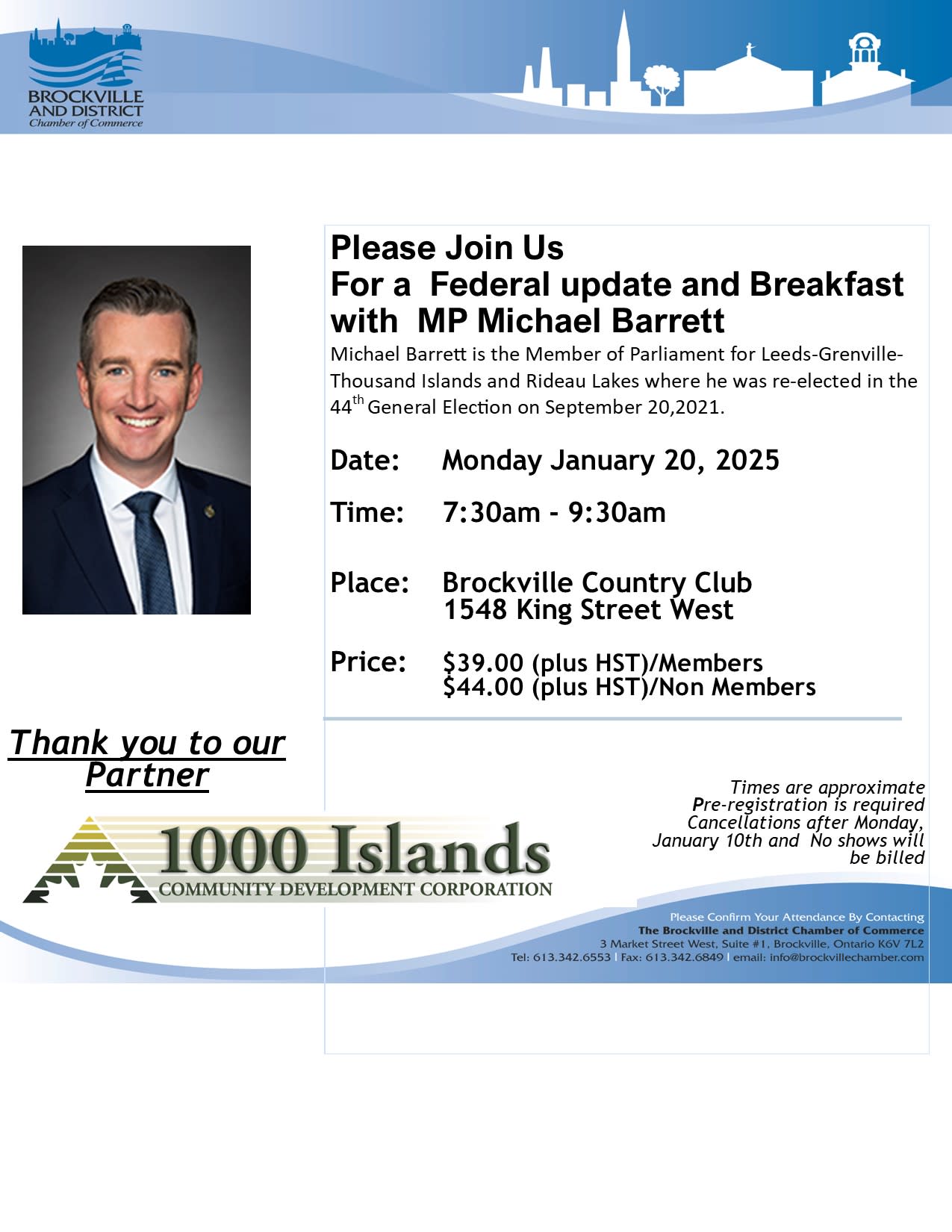 We are pleased to invite you to an exclusive Federal Government Update and Breakfast with Member of Parliament Michael Barrett. This event presents an excellent opportunity to stay informed on key federal initiatives, network with fellow business leaders, and discuss issues impacting our region and beyond.