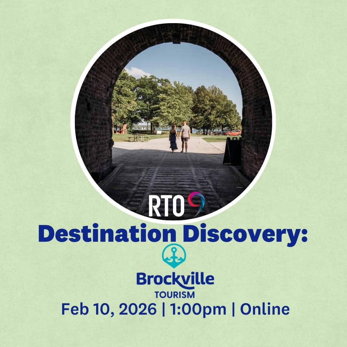 Join the Destination Discovery Series, brought to you by RTO 9 and Brockville Tourism, and get connected with the people and programs here to help your tourism business grow.