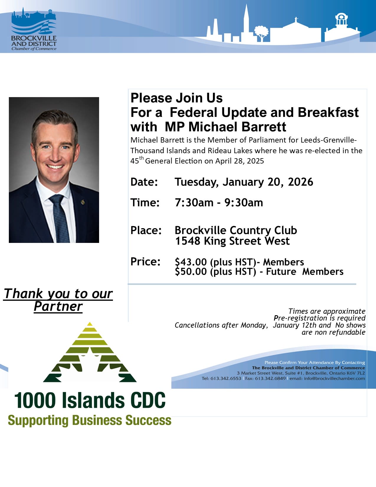 You're Invited! Join us for a Federal Update and Breakfast with MP Michael Barrett.